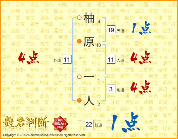柚原一人さんの人運は11画の4点!