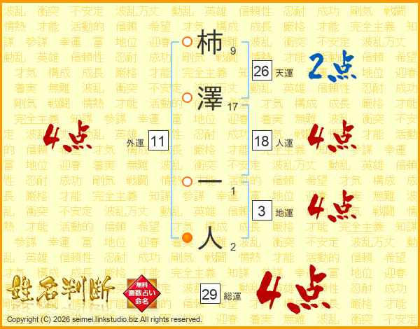 柿澤一人さんの総運は29画の4点!