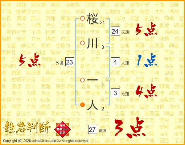 桜川一人さんの総運は27画の3点!