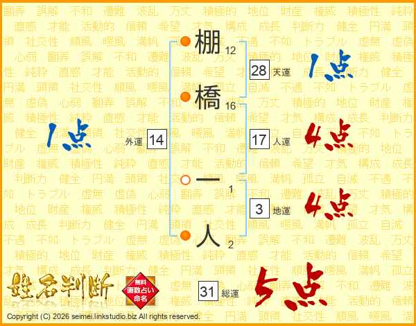 棚橋一人さんの総運は31画の5点!