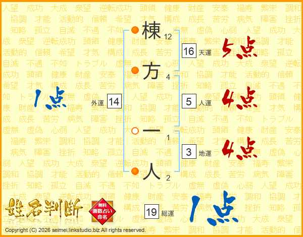 棟方一人さんの総運は19画の1点!