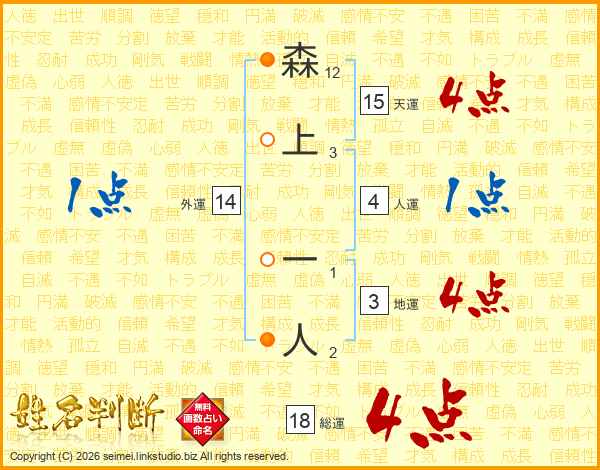 森上一人さんの総運は18画の4点!