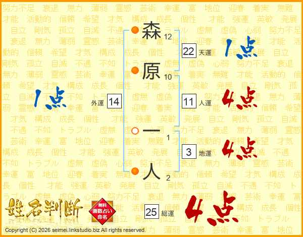 森原一人さんの人運は11画の4点!