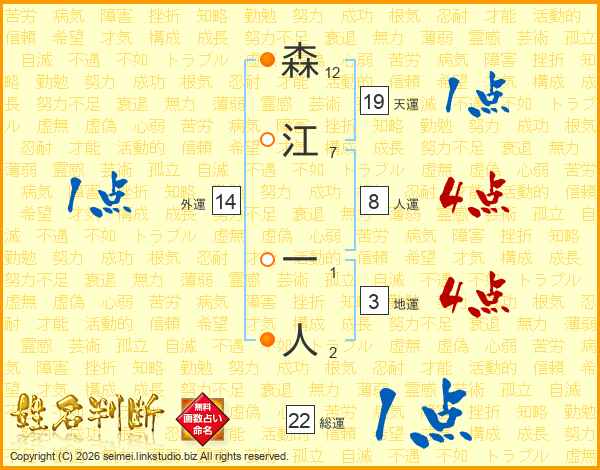 森江一人さんの人運は8画の4点!