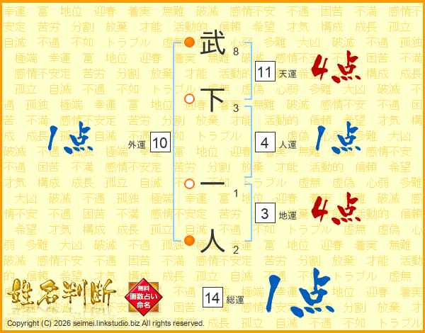 武下一人さんの天運は11画の4点!