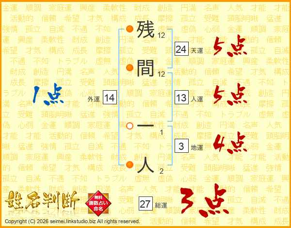残間一人さんの総運は27画の3点!