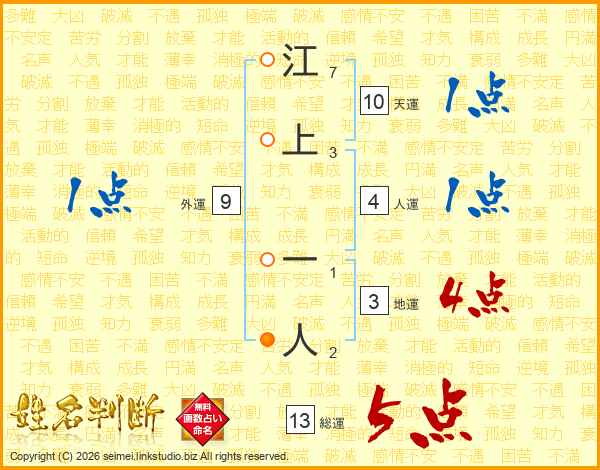 江上一人さんの総運は13画の5点!