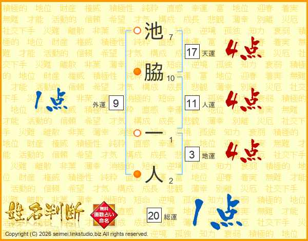 池脇一人さんの天運は17画の4点!