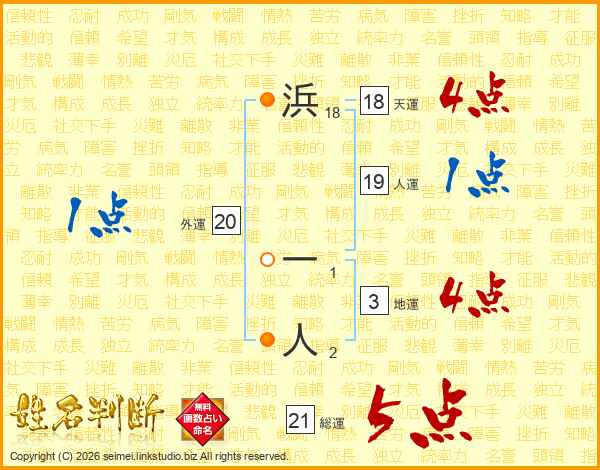 浜一人さんの天運は18画の4点!