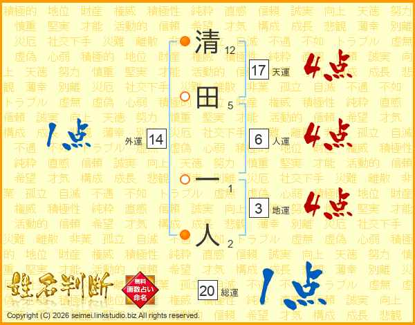 清田一人さんの天運は17画の4点!