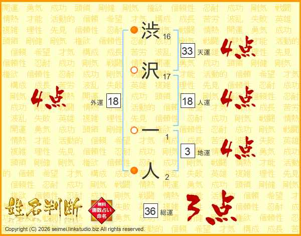 渋沢一人さんの天運は33画の4点!
