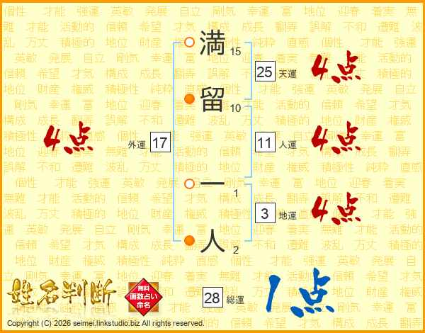 満留一人さんの人運は11画の4点!