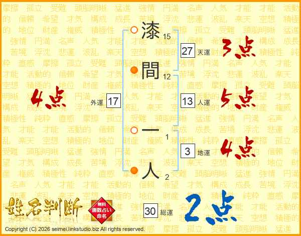 漆間一人さんの総運は30画の2点!