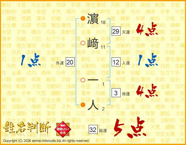 濵(18画)﨑(11画) 一(1画)人(2画)