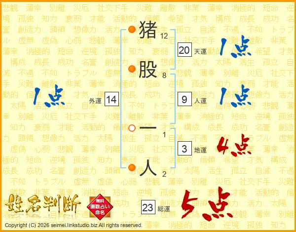 猪股一人さんの総運は23画の5点!