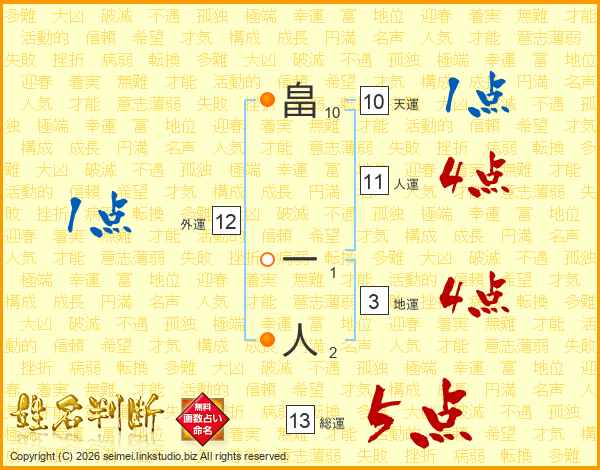 畠一人さんの総運は13画の5点!