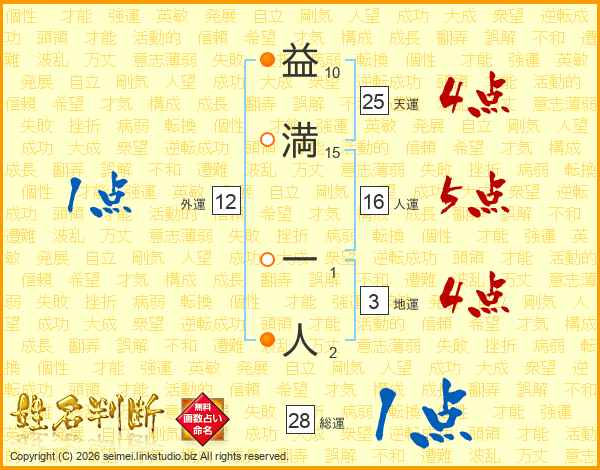 益満一人さんの天運は25画の4点!