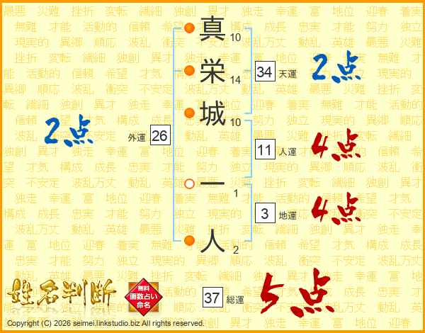 真(10画)栄(14画)城(10画) 一(1画)人(2画)