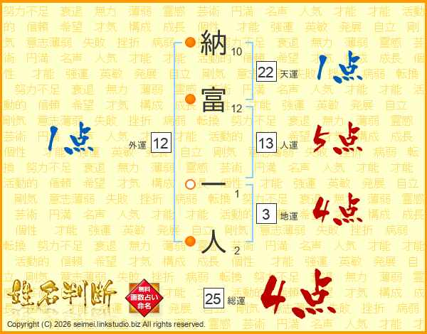 納富一人さんの総運は25画の4点!
