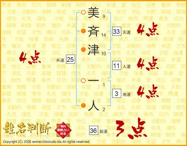 美斉津一人さんの天運は33画の4点!
