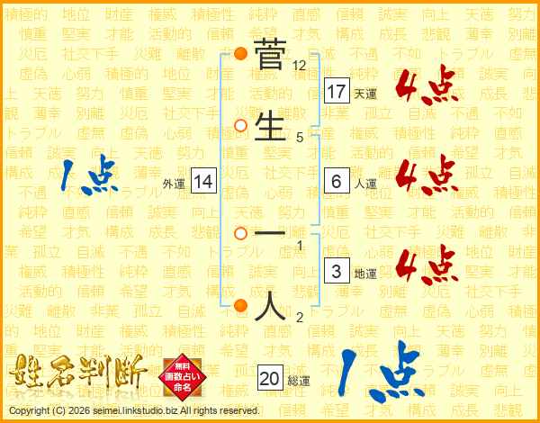 菅生一人さんの天運は17画の4点!