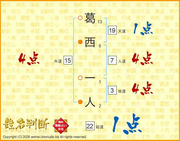 葛西一人さんの総運は22画の1点!