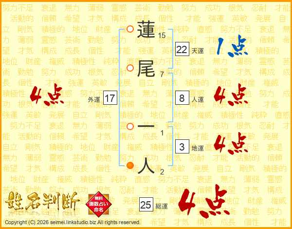 蓮尾一人さんの総運は25画の4点!