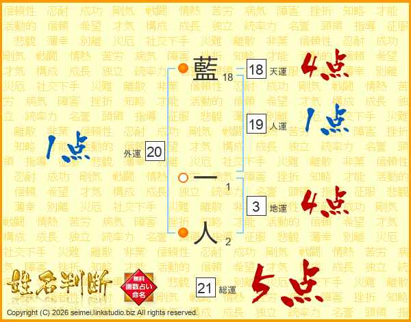藍一人さんの天運は18画の4点!