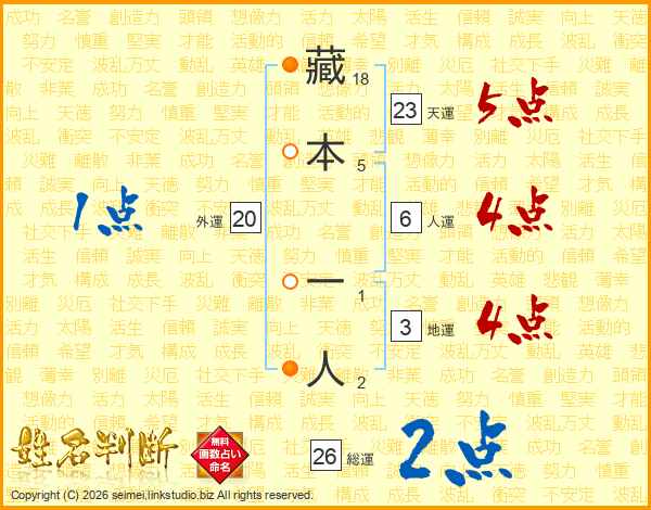 藏本一人さんの総運は26画の2点!