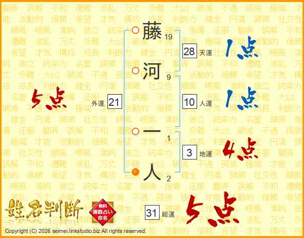 藤河一人さんの総運は31画の5点!