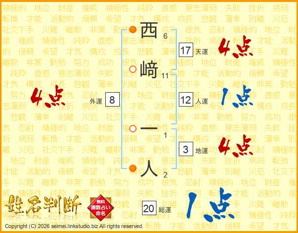 西﨑一人さんの人運は12画の1点!