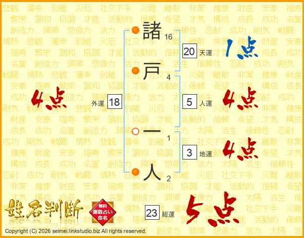 諸戸一人さんの総運は23画の5点!