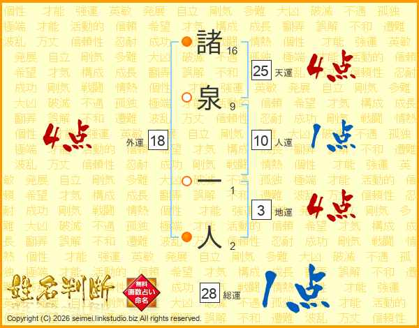 諸泉一人さんの総運は28画の1点!