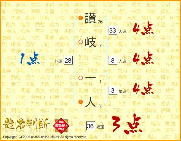 讃岐一人さんの天運は33画の4点!