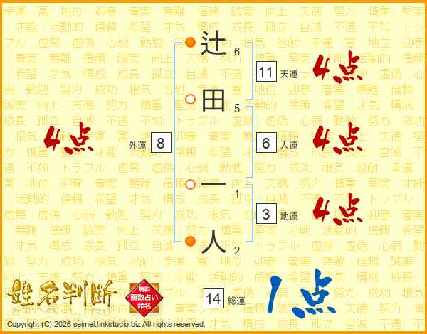 辻田一人さんの総運は14画の1点!