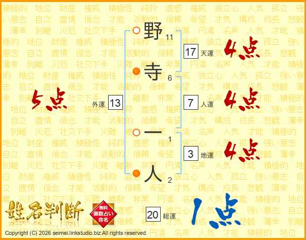 野寺一人さんの天運は17画の4点!