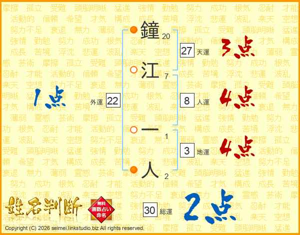 鐘江一人さんの天運は27画の3点!