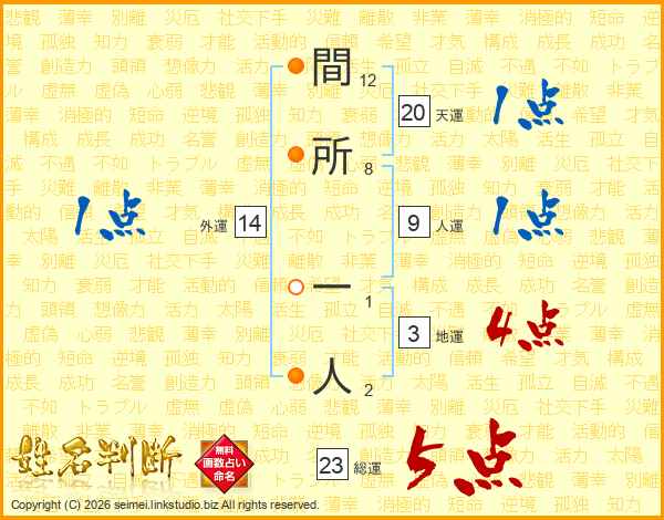 間所一人さんの総運は23画の5点!