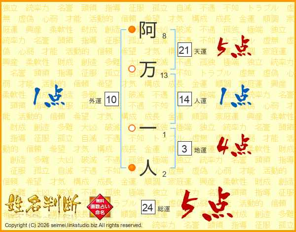 阿万一人さんの天運は21画の5点!
