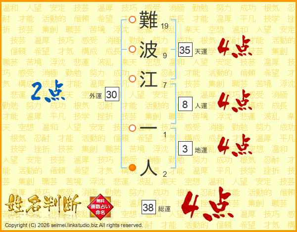 難波江一人さんの総運は38画の4点!