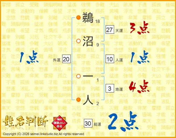 鵜沼一人さんの天運は27画の3点!