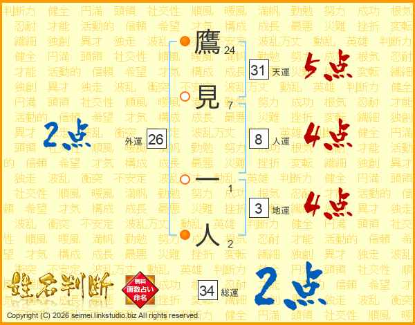 鷹見一人さんの総運は34画の2点!