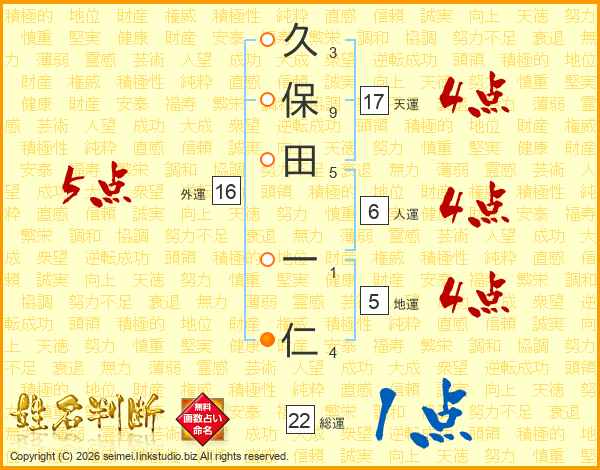久(3画)保(9画)田(5画) 一(1画)仁(4画)