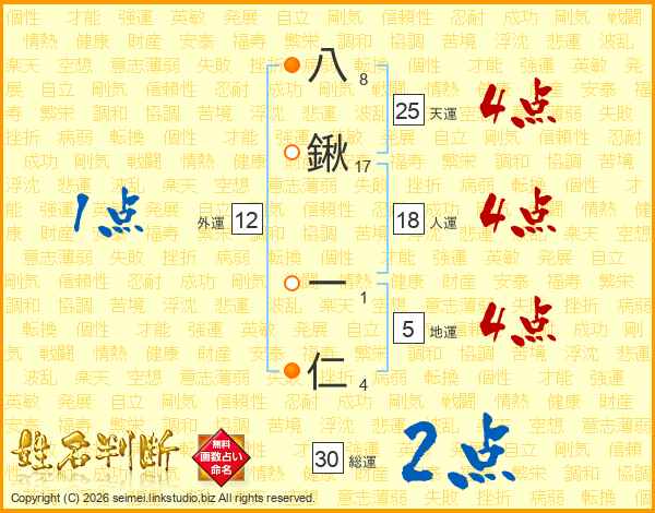 八鍬一仁さんの人運は18画の4点!
