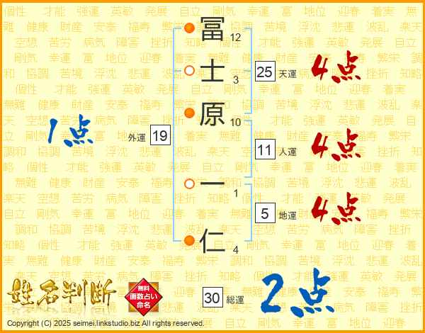 冨(12画)士(3画)原(10画) 一(1画)仁(4画)