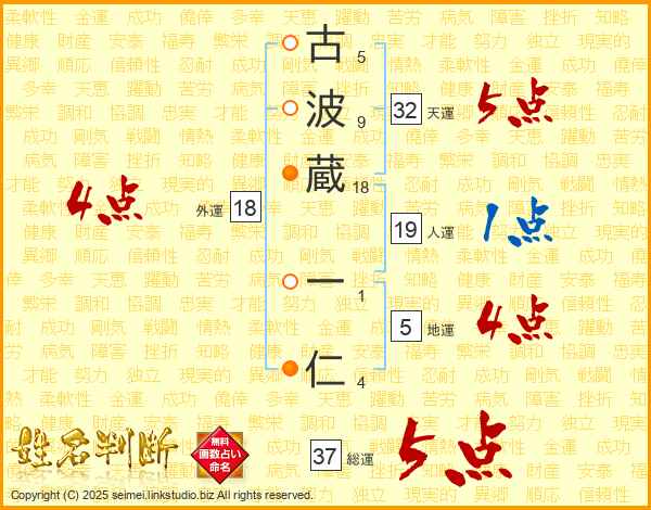 古(5画)波(9画)蔵(18画) 一(1画)仁(4画)