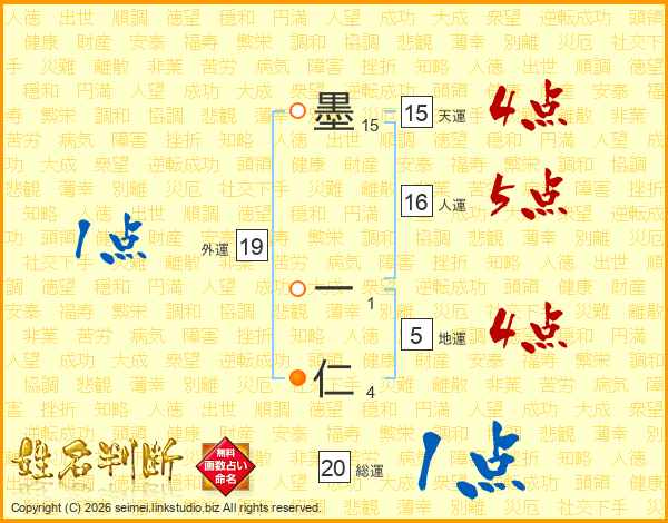 墨一仁さんの総運は20画の1点!