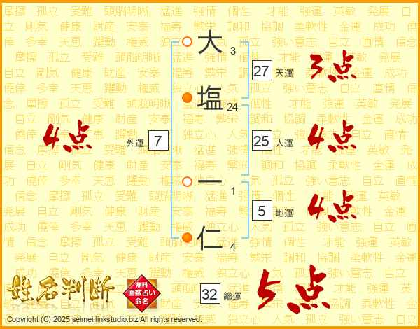 大塩一仁さんの総運は32画の5点!
