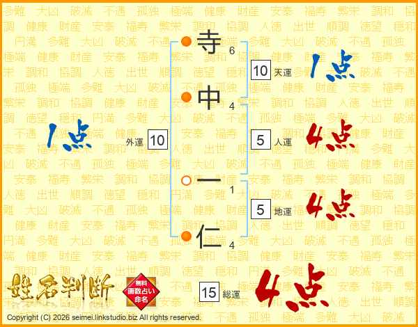 寺中一仁さんの総運は15画の4点!