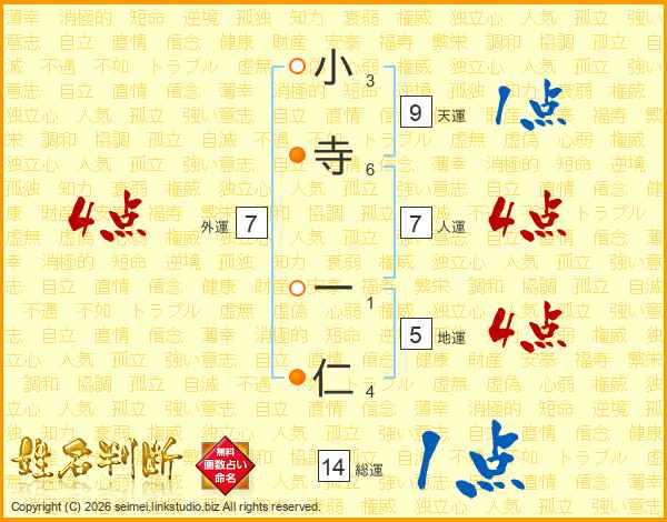 小寺一仁さんの総運は14画の1点!